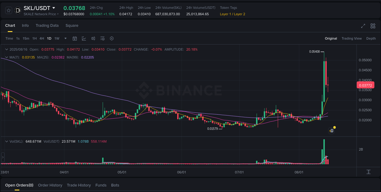 Operation with #SKL/USDT (Binance) realized 5.66% profit