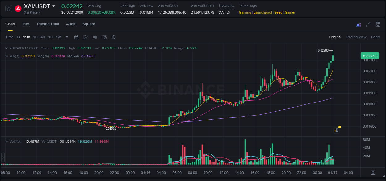Asset #XAI/USDT (Binance) showed 15.33% performance