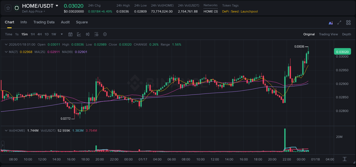 Trade #HOME/USDT (Binance) brought participants 15.72% returns