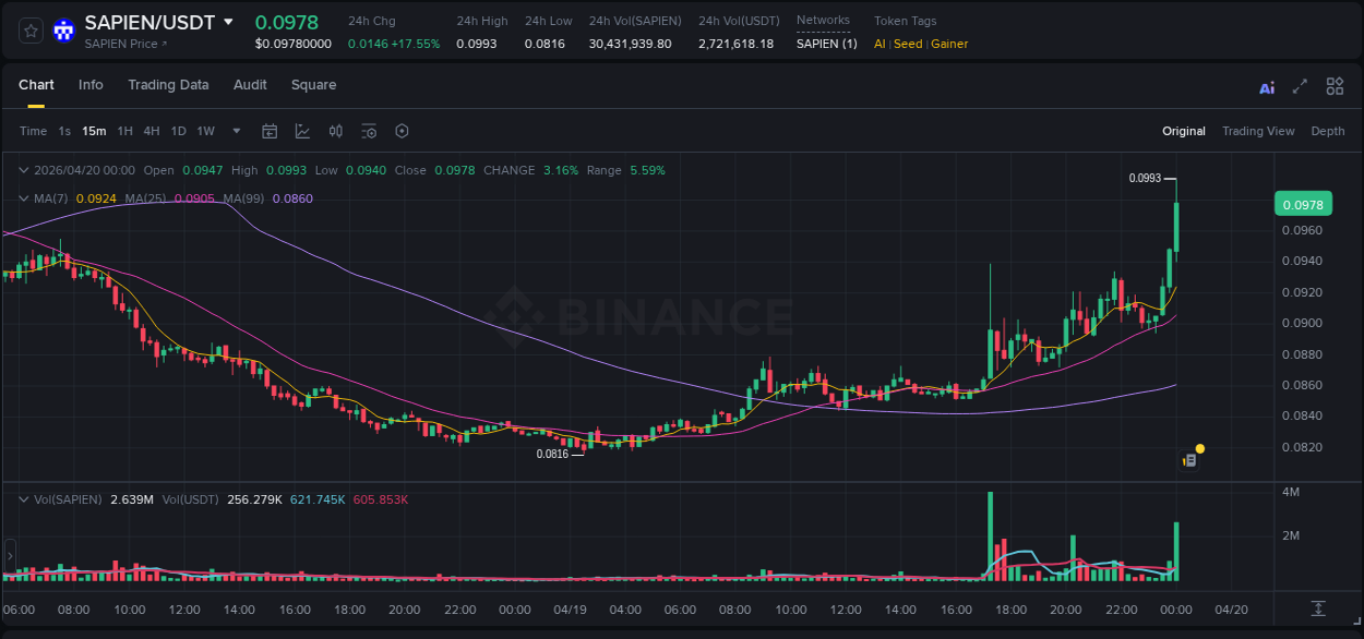 This is a report in real time of 🚀Pump coin 👉 #SAPIEN/USDT (Binance)