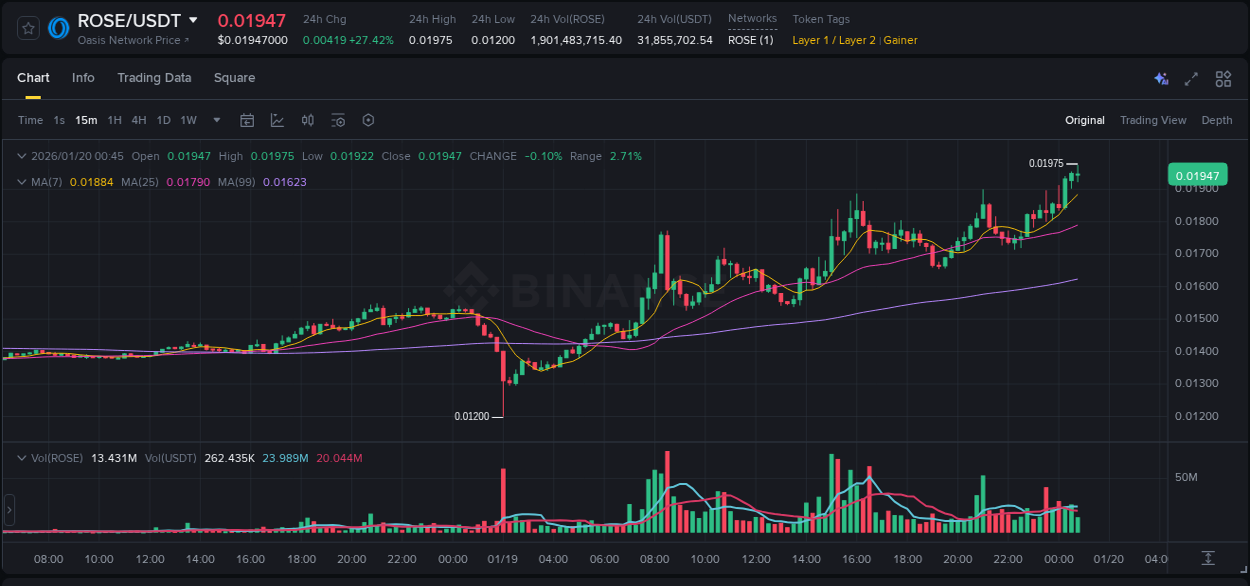 Instrument #ROSE/USDT (Binance) provided 15.28% returns