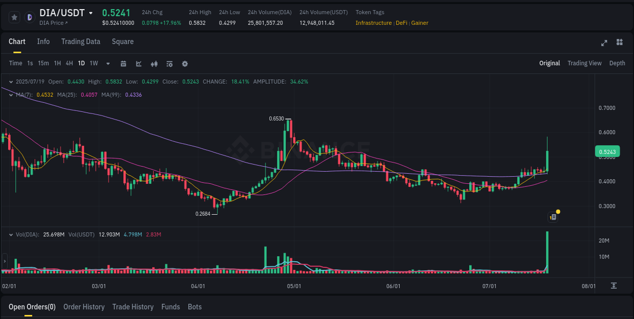 Asset #DIA/USDT (Binance) delivered 18.15% performance