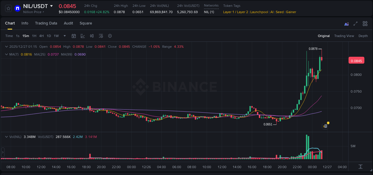 📆 #NIL has engineered a launchpad per the 🤖AI technical suite. Technical recovery after correction receives institutional support from growing volumes and significant improvement of market participant sentiments. Buying the asset at 🧮 0.087501 USDT with a backstop at 0.0658 maximizes reward